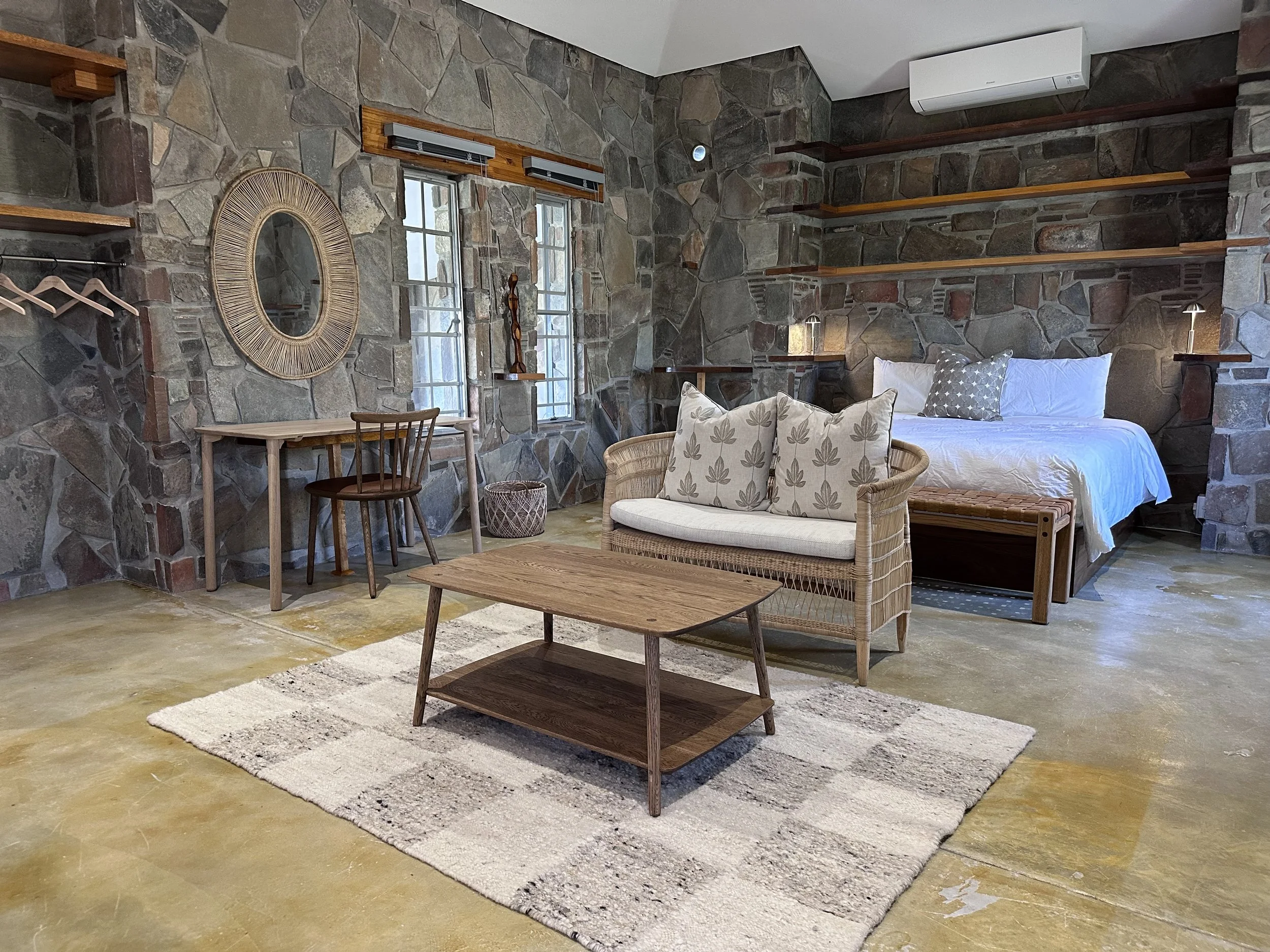 The Stone Cottage and the Stone House have been thoughtfully designed with an elegant yet natural ambiance while embracing a sustainable way of living in the arid escarpments. All accommodations are powered solely by solar energy for electricity and water heating, inspiring visitors to conserve, reduce, and reuse natural resources. The architecture is designed to facilitate natural ventilation and maintain comfortable temperatures throughout the unforgiving heat of summer and cold winters.