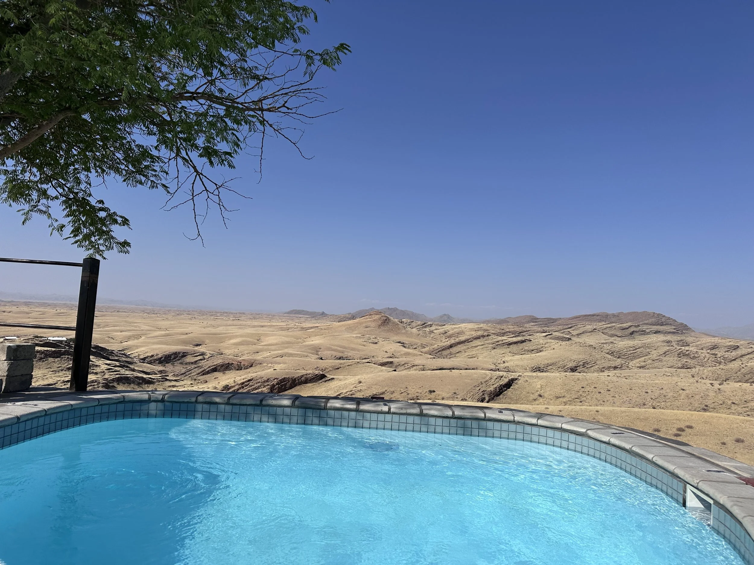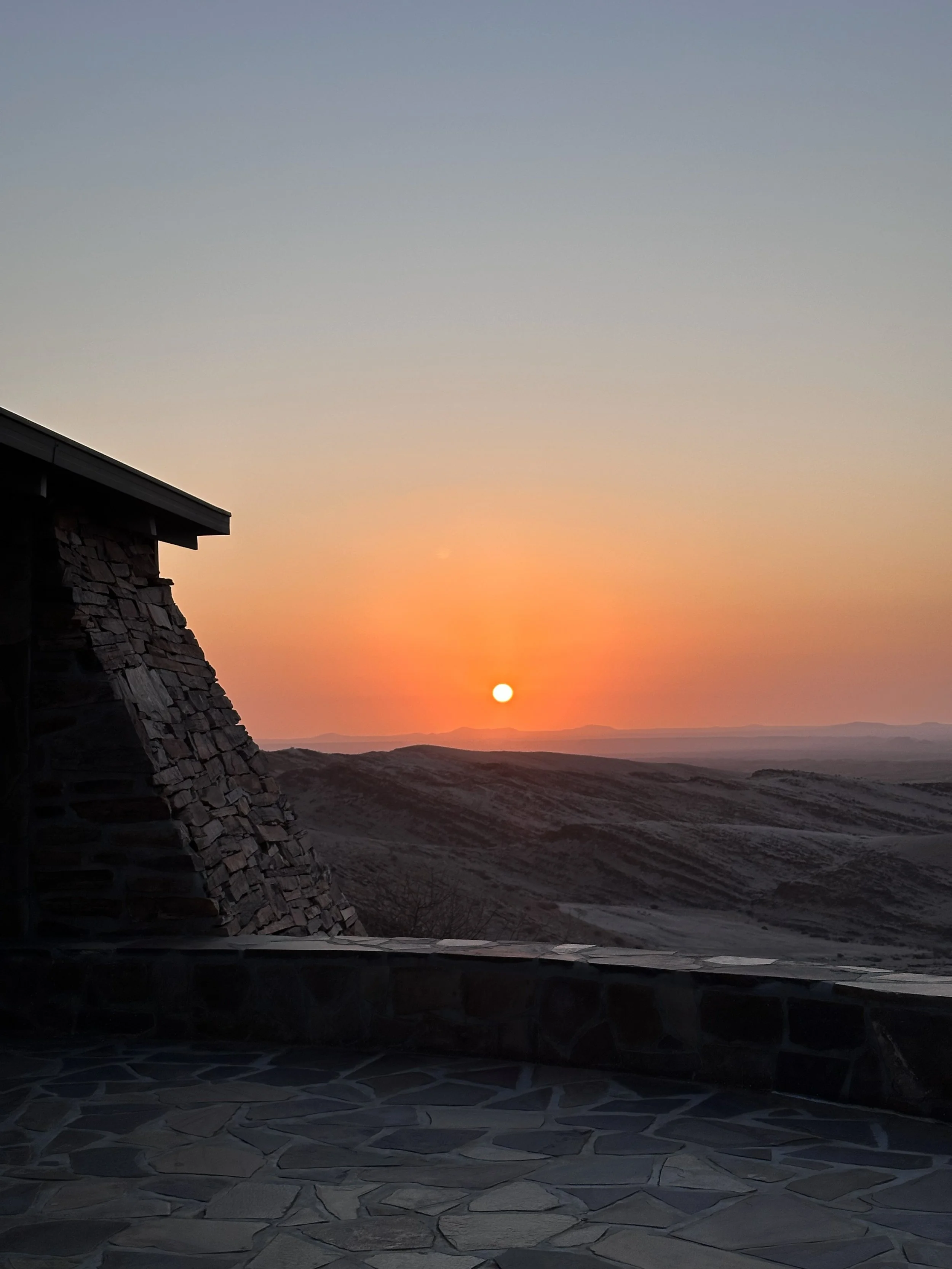 At the heart of the cottage is a shared open-plan space that brings together kitchen and lounge opening onto a terrace overlooking the Namib desert. This central room is generous and quiet, allowing for cooking, resting, reading, or working. The Eyrie consists of two modestly sized rooms, each with its own private bathroom.